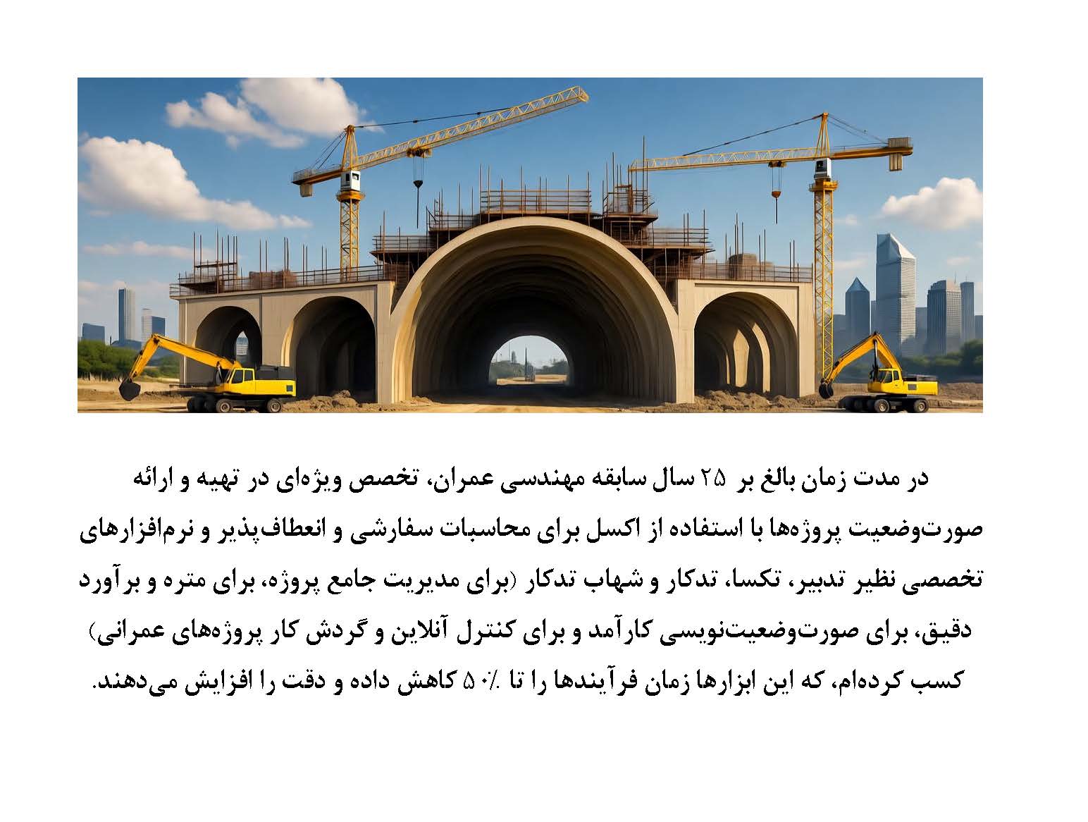 تهیه و تنظیم صورت وضعیت کارکرد و تعدیل پروژههای عمرانی خود را با دقت و حرفهایترین شکل به ما بسپارید.